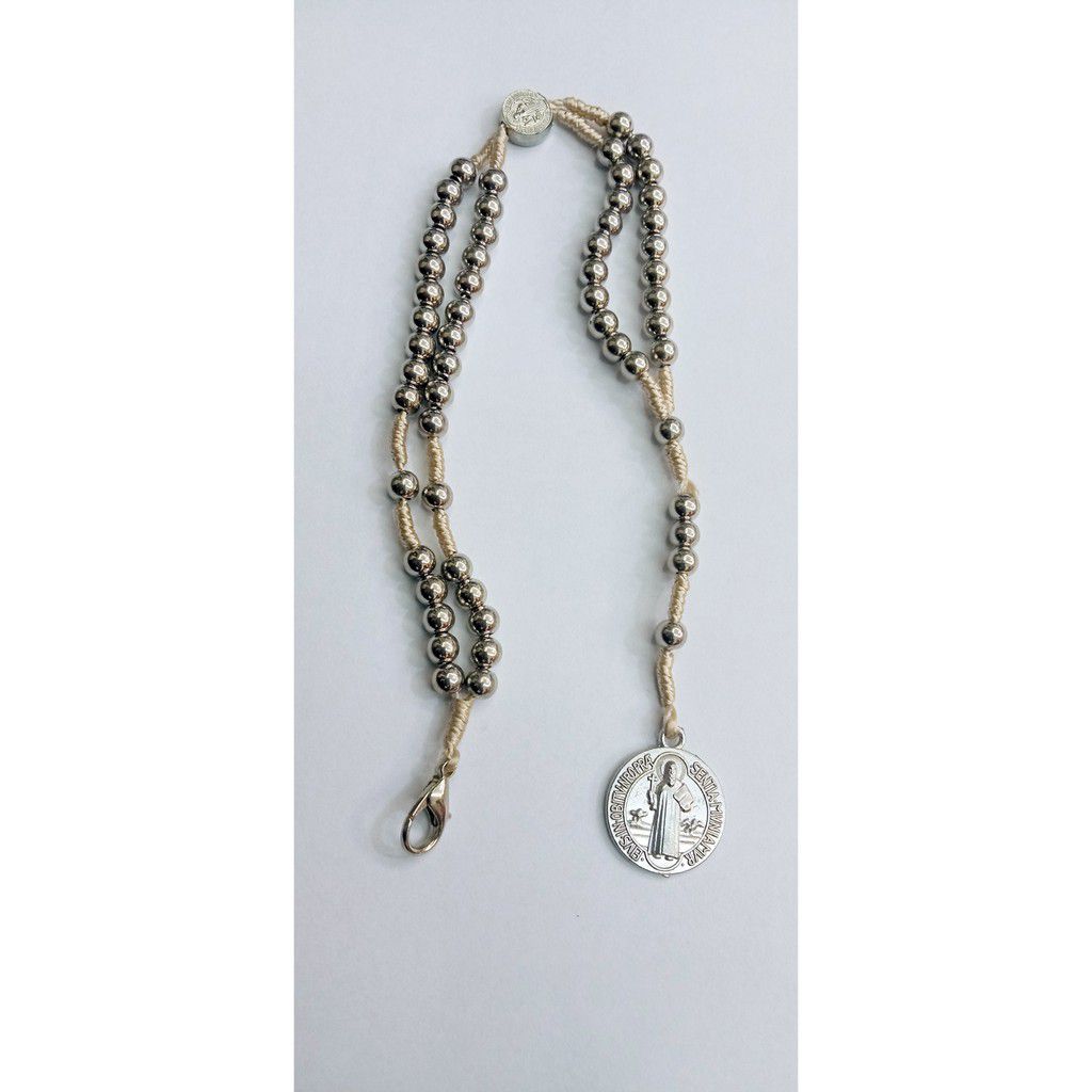 Terço de pulso com medalha de São Bento Prateada Comprimento - 23cm Tamanho da medalha - 1,5cm Com fecho regulável Super leve Ideal para pulso até 21cm