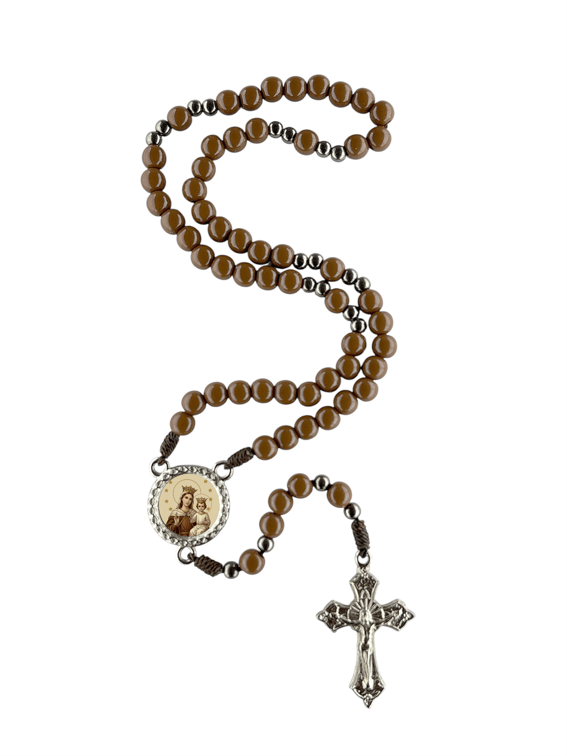 Terço de Nossa Senhora do Carmo Marrom com Folheto