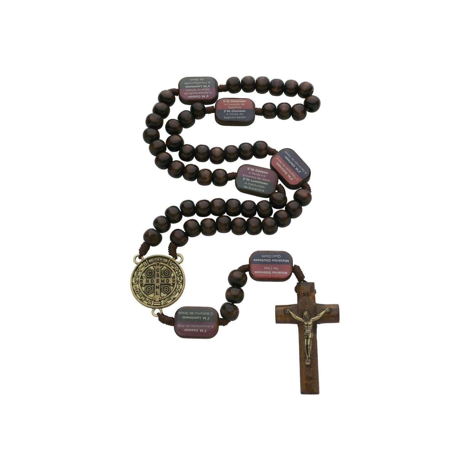 Terço da Contemplação Dos Mistérios em Madeira com São Bento 10mm
