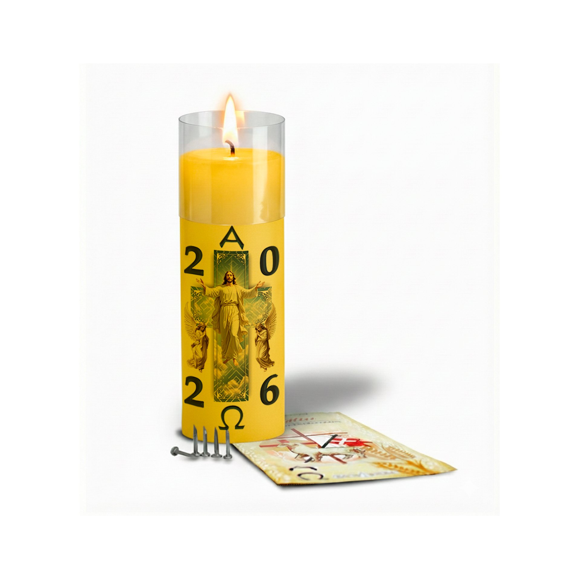 A Vela Mini Círio da Família representa cristo ressuscitado. É ideal para viver o Tempo Pascal em oração, acendendo-a quando a família estiver reunida. O folheto incluso “Da Páscoa a Pentecostes” guia a família em momentos semanais de oração, com propostas para cada domingo após a Páscoa, acompanhando todo o caminho espiritual até o dia de Pentecostes. Uma peça simbólica e especial para fortalecer a fé no lar.